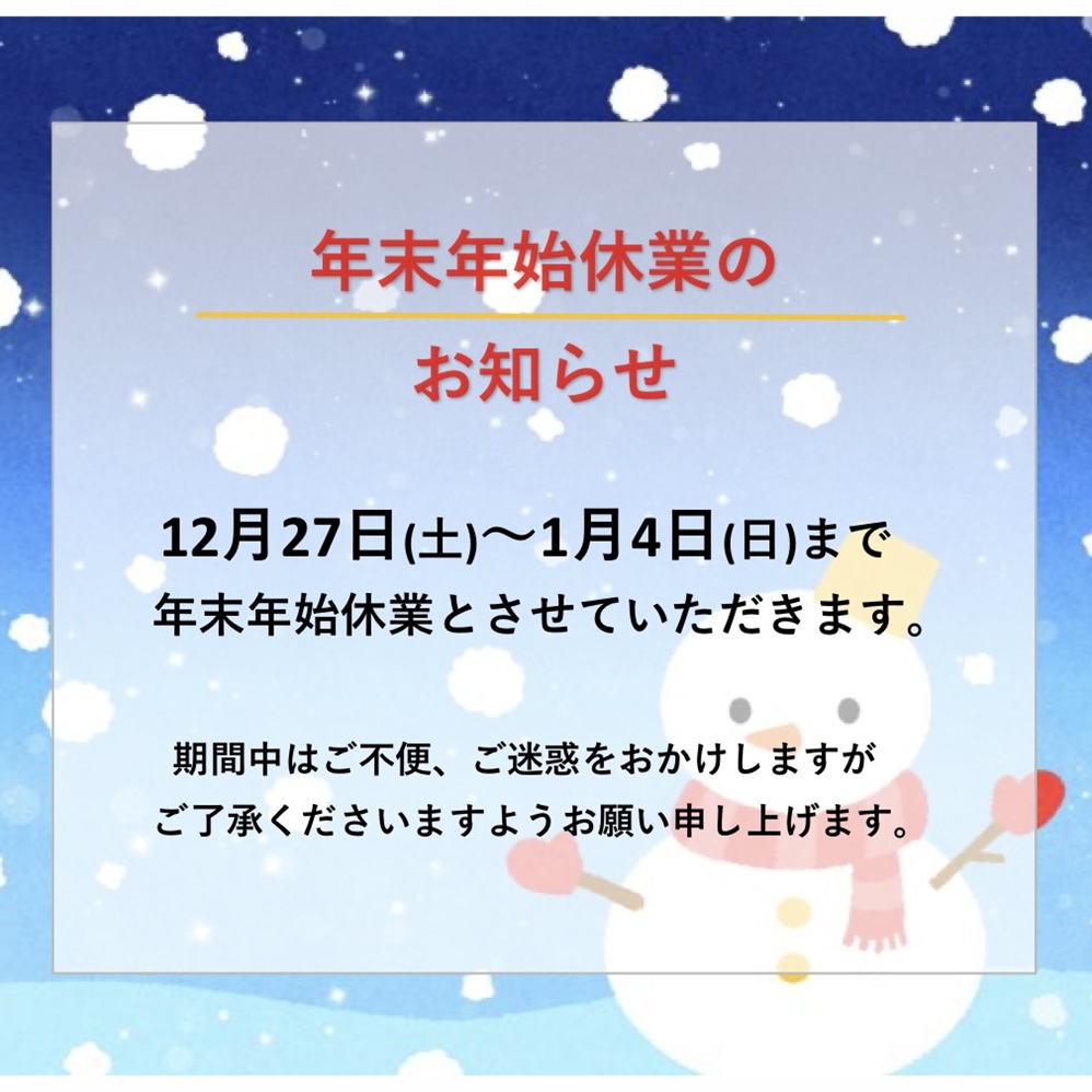 休業期間:令和7年12月27日(土)~